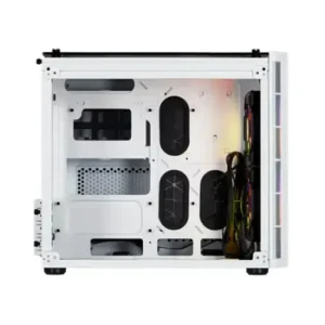 The Corsair Crystal Series 280X RGB tempered glass micro ATX casing in white provides a stunning visual experience while prioritizing functionality. Its dual-chamber design ensures optimal airflow, keeping your components cool even under load.